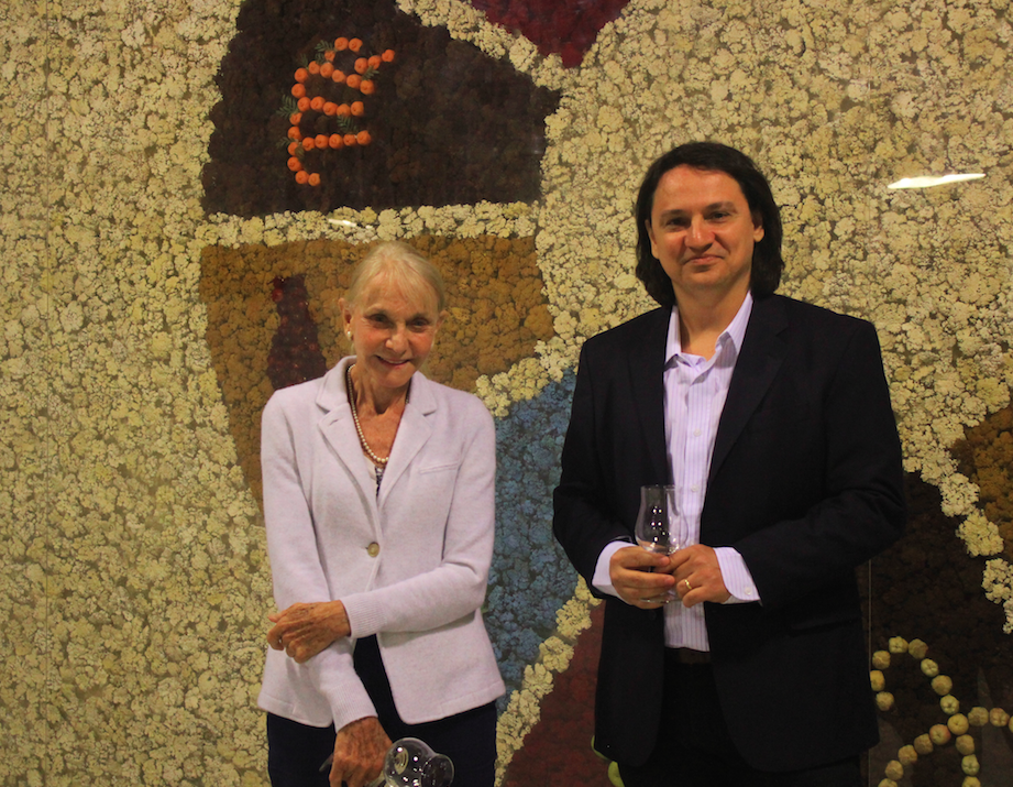 Tive a grande honra de ser recebido pessoalmente por Madame Lalou em sua Domaine para uma conversa e prova de vinhos. Ela e seu braço direto, Frédéric Roemer, foram muito simpáticos contrariando a fama de difícil, senão impossível, construída por Mme ao longo das últimas décadas. Difícil sim foi acompanhar o ritmo desta senhora. Elétrica (esta fama sim, pude comprovar), ela não parou de falar, gesticular e provar com uma velocidade incrível. Mal pude filmá-la (ela não parava quieta e visivelmente fugia da câmera) e a prova de uns 30 vinhos, direto das barricas, durou menos de uma hora.