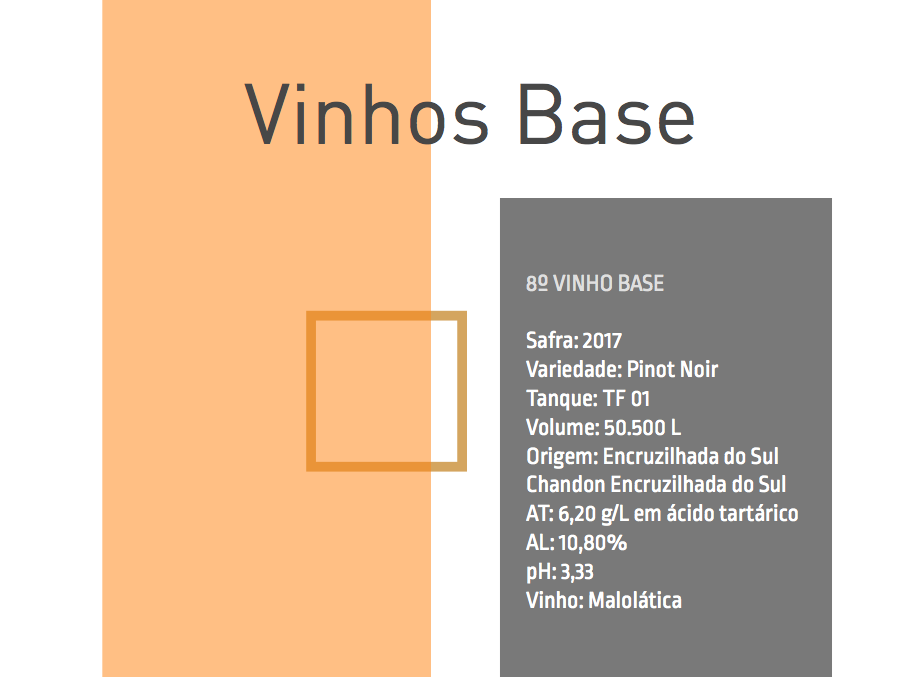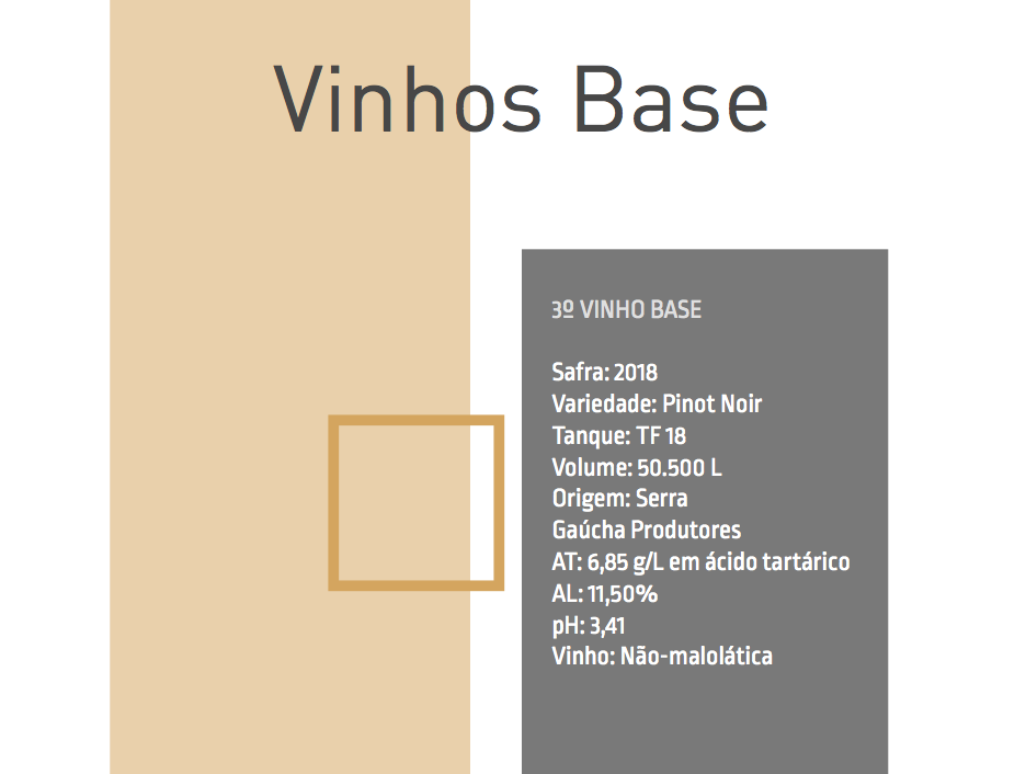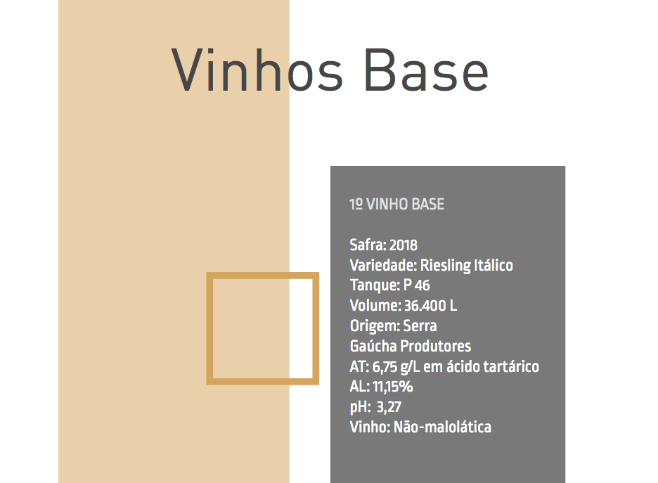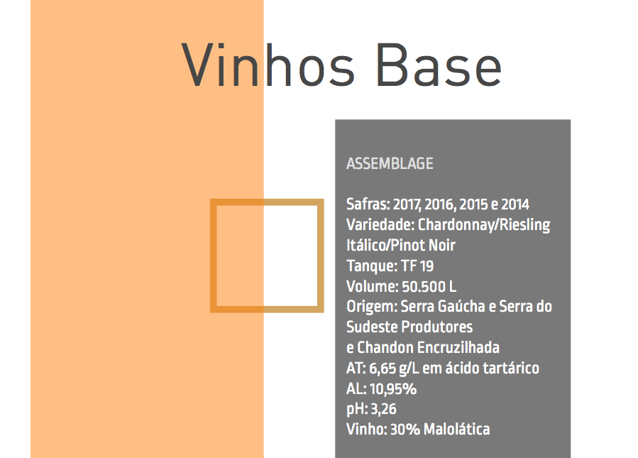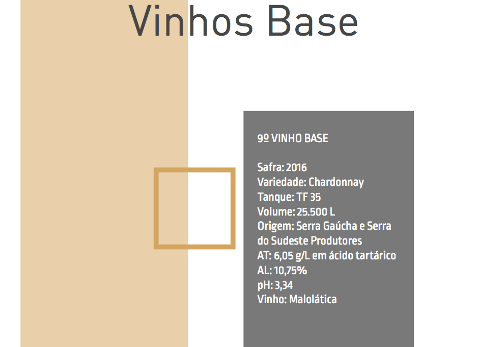 Provamos 10 vinhos base, Chardonnay, Pinot Noir em branco e Riesling Itálico, das safras 2016, 2017 e 2018, amostras de diferentes vinhedos/regiões.