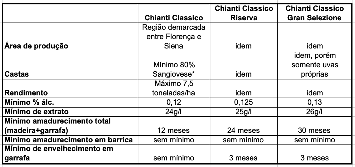 *Mínimo 80% Sangiovese, podendo chegar a 100%, com máximo de 20% de quaisquer outras castas tintas, inclusive estrangeiras