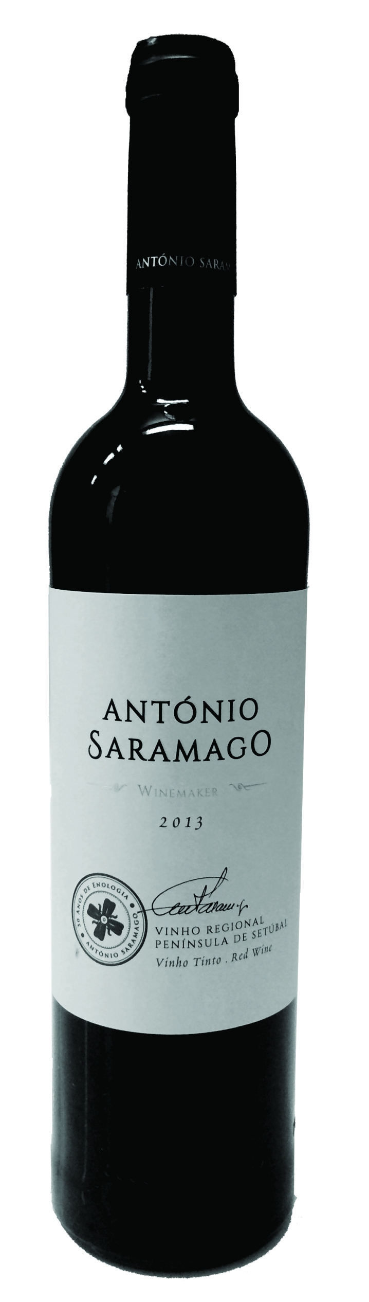 Como o nome sugere, este é um vinho comemorativo dos 50 anos de enologia de António Saramago. Elaborado com 80% de Castelão, 10% de Touriga Nacional, 5% de Alicante Bouschet e 5% de Cabernet Sauvignon, com 18 meses em carvalho francês. Cor granada muito escura. Aroma concentrado, de frutas negras, madeira de fina tosta, muitas especiarias, frescor balsamico, chocolate. Paladar concentrato e sério, com muitos taninos, acidez firme típica da Castelão, muito longo e profundo, para guarda. Bela homenagens aos 50 anos do mestre.
